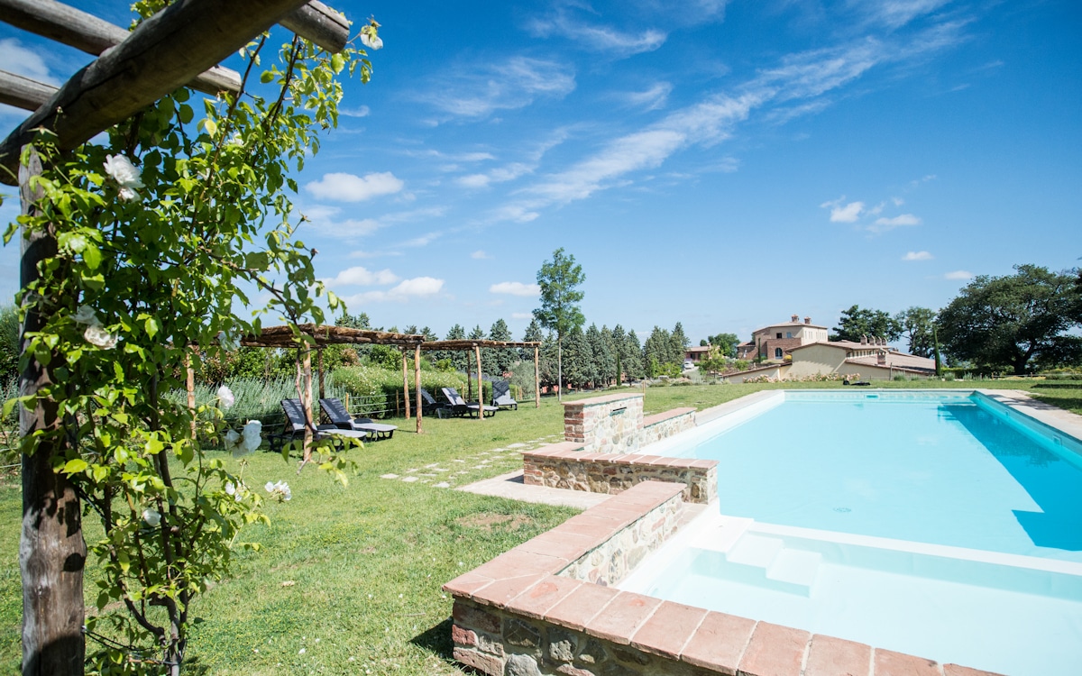 Das Ferienhaus Chianti 2 ist Teil einer alten toskanischen Bauernhofanlage, die in jüngster Zeit aufwendig restauriert wurde. Inmitten des Chianti-Classico-Gebietes zwischen Florenz und Siena gelegen, besticht das Haus durch seine einzigartige Lage auf einer natürlichen Terrasse, umgeben von Wäldern, Weinbergen und Olivenbäumen mit herrlichem Blick über das Tal.